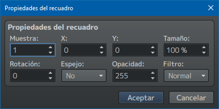Por defecto se verá de color claro, esto es porque se añade con modo de mezcla «añadir». Si le das doble clic o clic derecho > editar al cel ya colocado, verás sus propiedades. Por cierto, en español parece que a los cels el programa los llama recuadros.